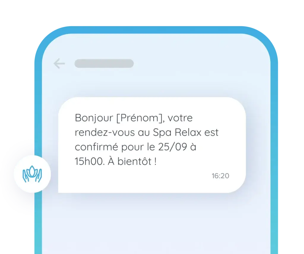 Un SMS transactionnel qui confirme la date, le lieu et l’heure du rendez-vous permet à votre client ou patient d’avoir tous les renseignements nécessaires pour y assister.
